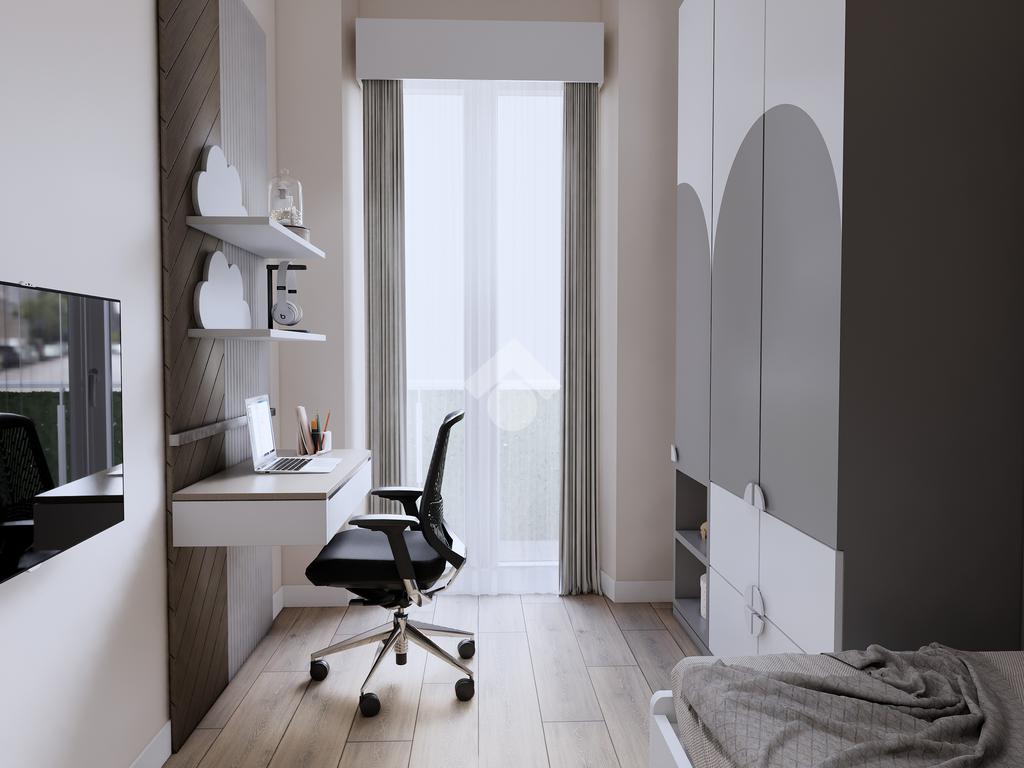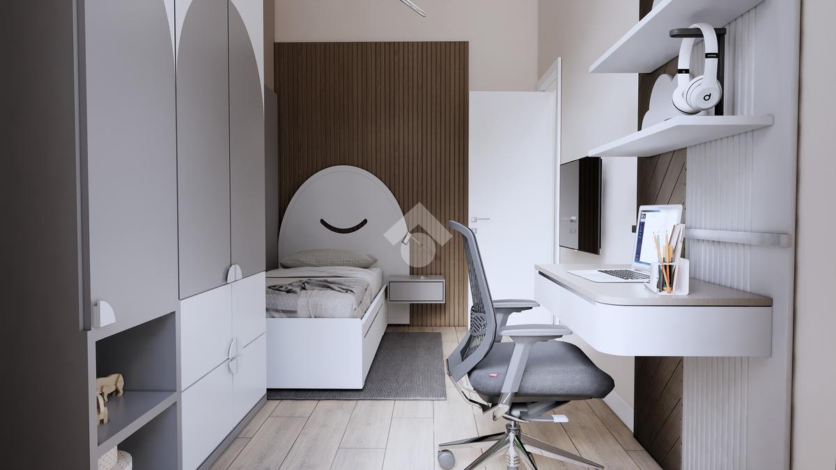 La zona notte comprende una spaziosa camera matrimoniale e una cameretta, perfetta come stanza per bambini, studio o ospiti.